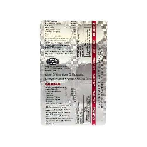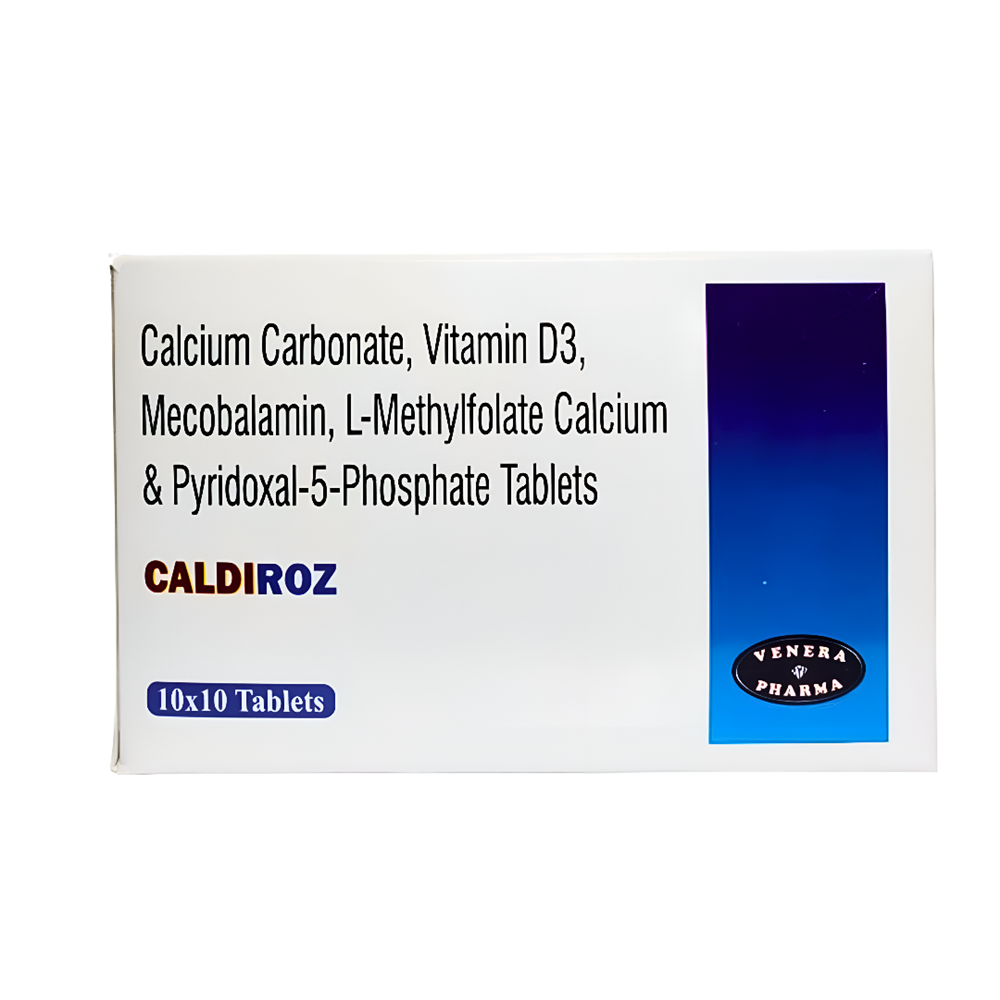 Caldiroz Tablet enhances calcium levels, Strengthens bones protects nerves, treats nutritional deficiencies.