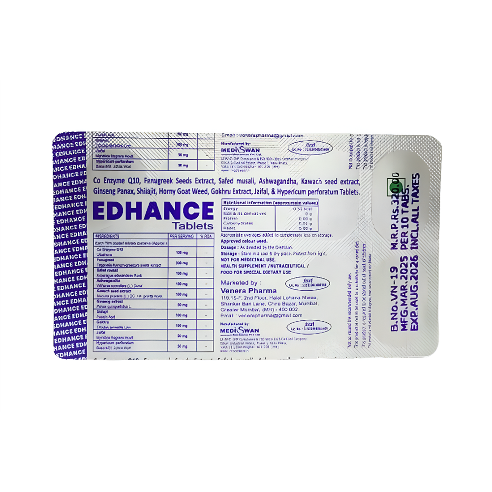 Coenzyme Q10 (CoQ10) supplementation may improve erectile function, particularly in men with hypertension and mild erectile dysfunction, by reducing oxidative stress and improving antioxidant enzyme activity.Safed musli is helpful in curing male impotence and erectile dysfunction and infertility.Shilajit works by increasing nitric oxide production in the body, which helps in dilating blood vessels and improving blood flow to the penis. This improve blood circulation is essential for achieving and maintaining an erection.Fenugreek seed extract helps in improving libido and overall sexual health.