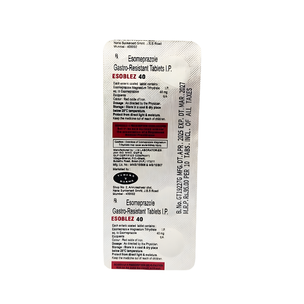 GERD is a chronic (long-term) condition that is like having heartburn consistently rather than just occasionally. It happens because a muscle above your stomach relaxes too much and allows stomach contents to come back up into your esophagus and mouth. Esoblez 40 Tablet belongs to a group of medicines called proton pump inhibitors. It reduces the amount of acid your stomach makes and relieves the pain associated with heartburn and acid reflux. Some simple lifestyle changes can help reduce the symptoms of GERD. Think about what foods trigger heartburn and try to avoid them; eat smaller more frequent meals; try to lose weight if you are overweight and try to find ways to relax.