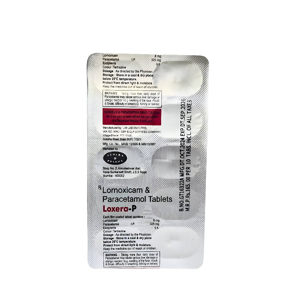 Loxera-P Tablet is to treat pain and inflammation in conditions like rheumatoid arthritis, ankylosing spondylitis, and osteoarthritis. It is also used to relieve muscle pain, back pain, toothache, or pain in the ear and throat.