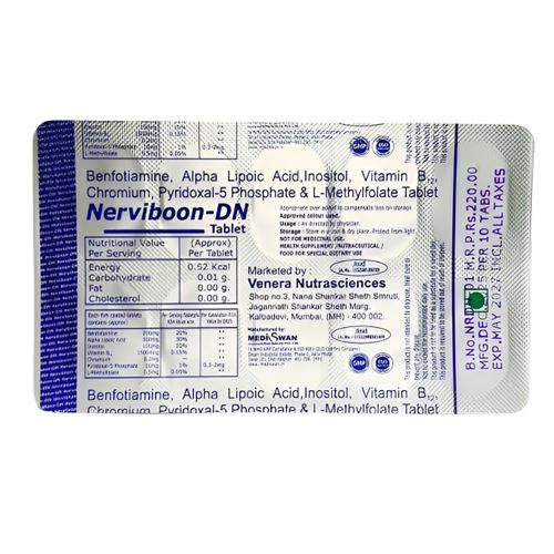 Nerviboon - DN tablet is used in the treatment of vitamin and mineral deficiencies. It replenishes the body’s stores of important nutrients. It is also used in treatment of neuropathy.