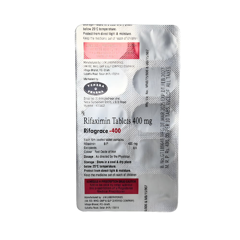 Rifagrace 400 Tablet is an antibiotic that treats hepatic encephalopathy, a condition in which the liver fails to remove harmful toxins from the blood, leading to brain damage. It is also used to treat infectious diarrhea. It works by killing and stopping the growth of harmful bacteria in the intestines.