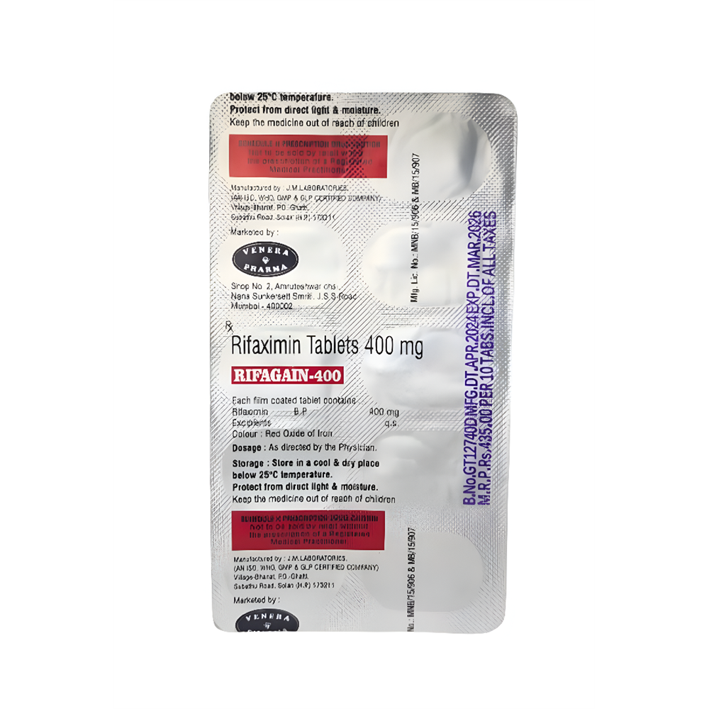 Rifagain Tablet is an antibiotic that treats hepatic encephalopathy, a condition in which the liver fails to remove harmful toxins from the blood, leading to brain damage. It is also used to treat infectious diarrhea. It works by killing and stopping the growth of harmful bacteria in the intestines.